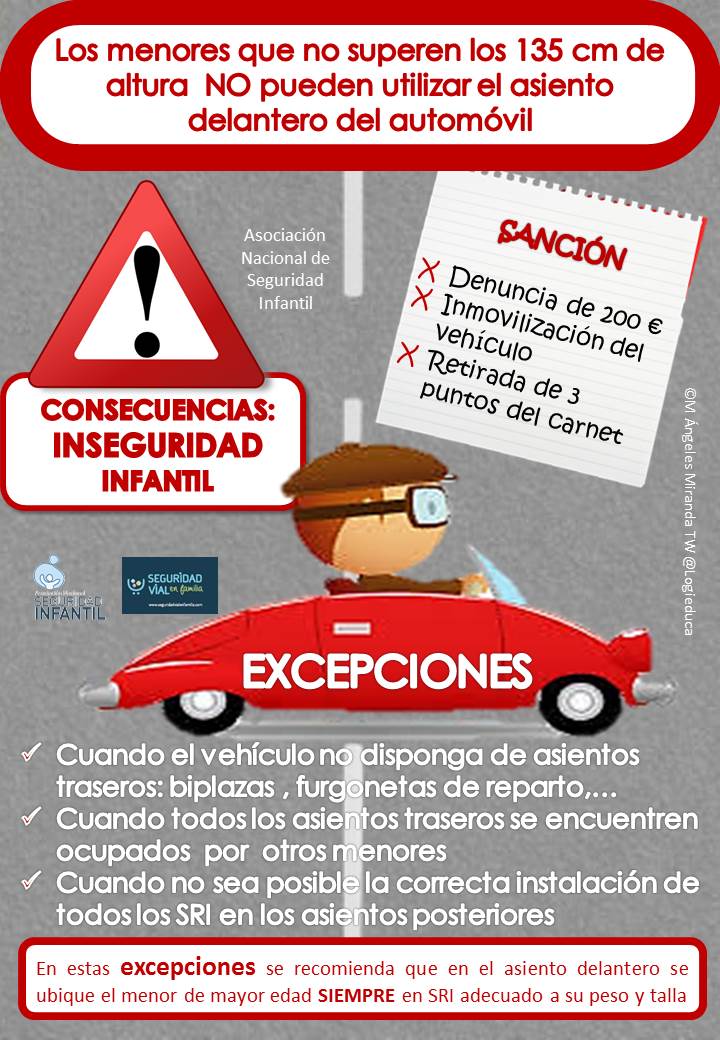 El menor de edad y con una altura menor o igual a 135 cms podrá viajar en el asiento delantero del vehículo